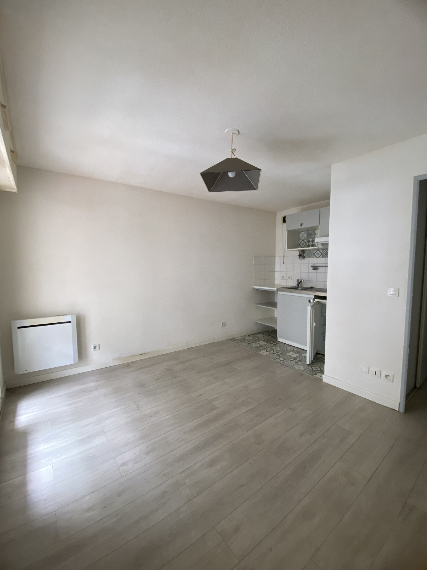 Ce studio situé au 1er étage avec ascenseur vous offre une entrée avec placard, une pièce de vie avec coin cuisine et une salle d'eau avec wc.