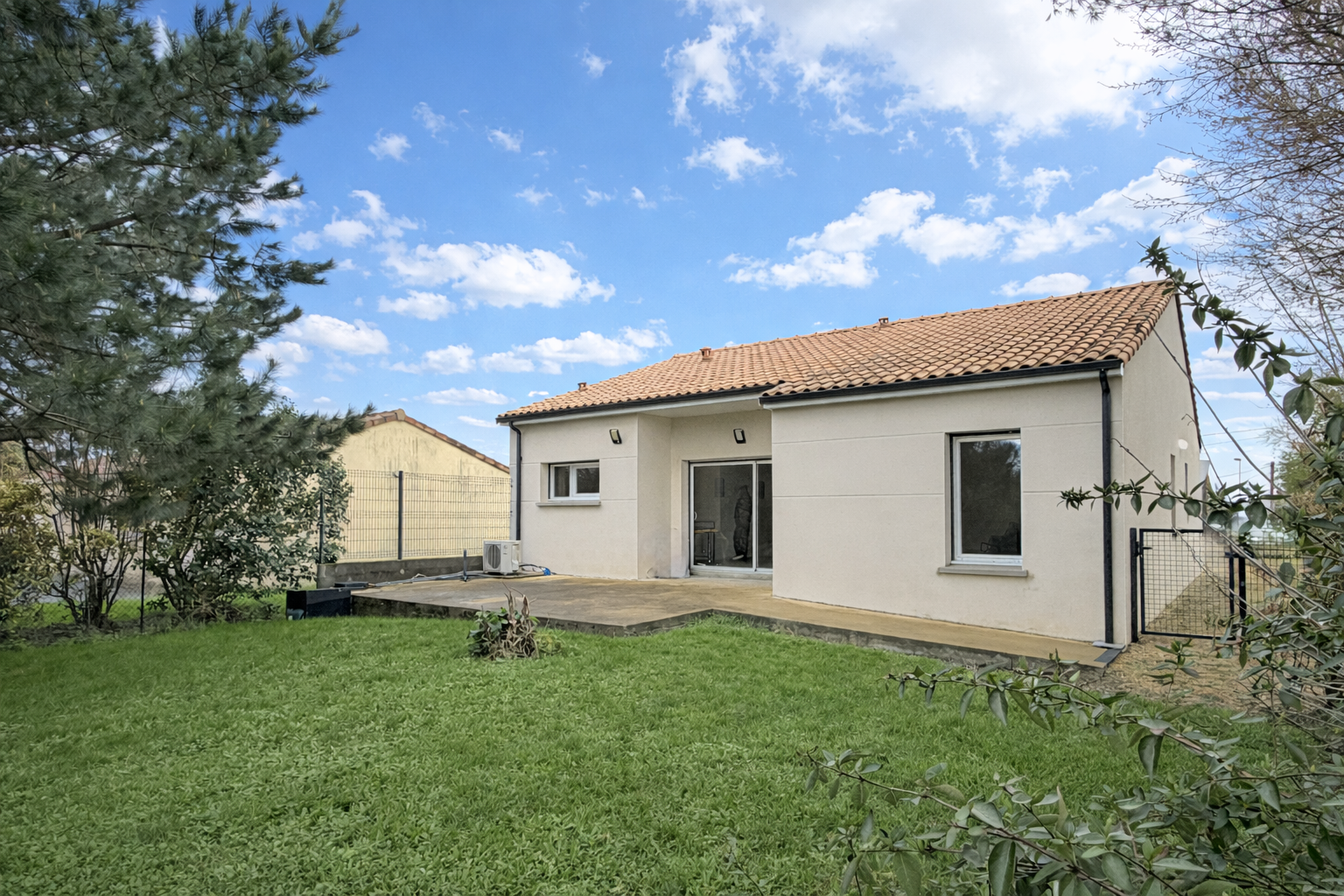 Maison de plain-pied avec jardin.